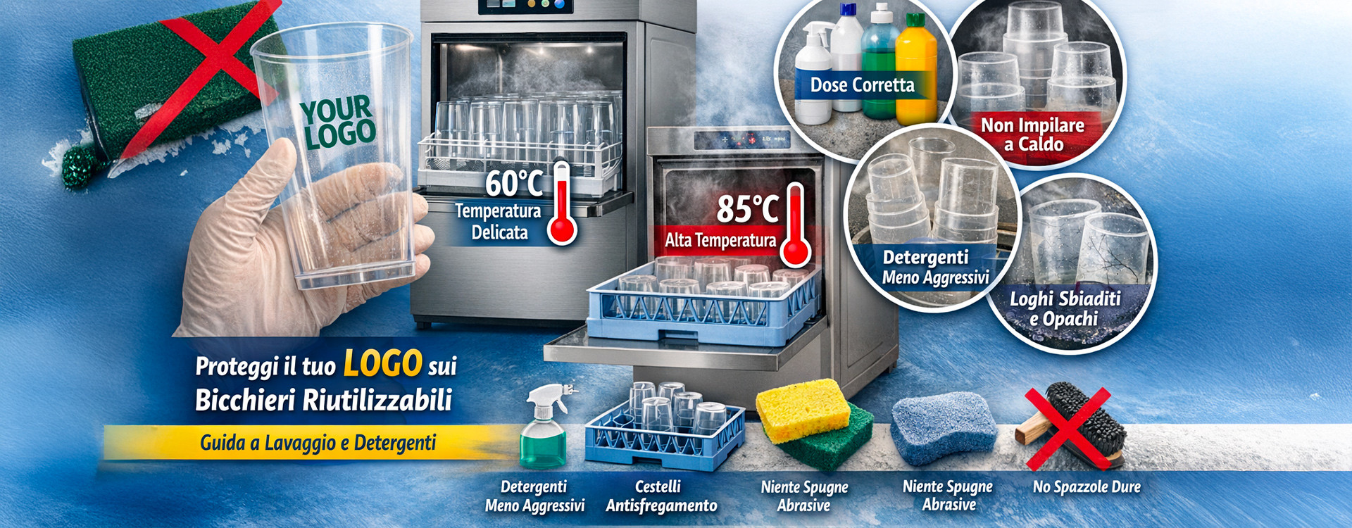 Bicchieri personalizzati: come non rovinare il logo (lavaggio e detergenti)